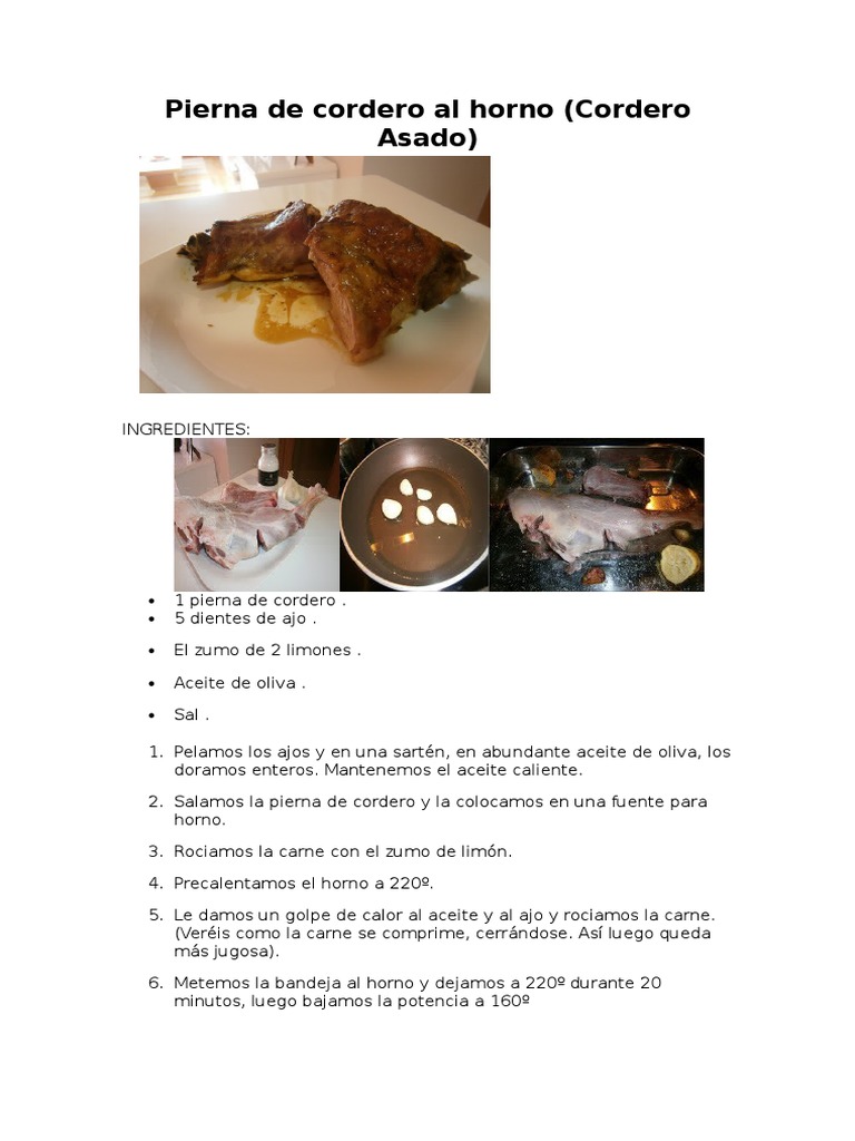 Preparar una deliciosa y jugosa pierna de cerdo al horno es fácil, como podrás comprobar al seguir la receta al estilo peruano que hemos conseguido para compartir contigo. La carne de cordero es una fuente de proteínas de alto valor biológico, vitaminas como b6, b12 y minerales como: Fría la pierna en un sartén de ambos lados hasta que este dorada y sellada, si no le cabe en un sartén puede usar una parrilla eléctrica o de carbón. Embadurnar las piernas de cordero con esta emulsión y ponerlas al horno a 180º durante 30 minutos. Se trata de una pierna de cordero al horno tierna gracias a los líquidos y al vapor que se concentran a la hora de cocinarlo que permiten que la carne quede bien jugosa y para nada seca.